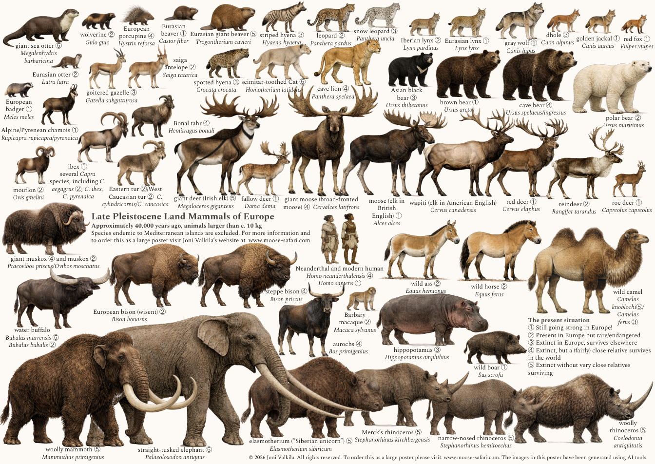 Europe, when it was still wild - A beautifully illustrated poster of the mammals of Ice Age Europe